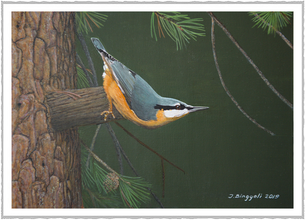 ![]() | Sittelle torchepot Abritée sous la large jupe d’un pin, la petite acrobate est à deux doigts de s'envoler... Acrylique sur panneau 30 x 21 |