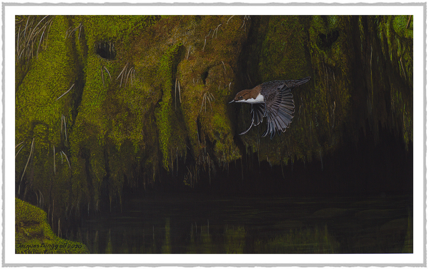 ![]() | Cincle plongeur Mousses et lumières, symphonie d'ambre et d'émeraude sur le ruisseau.
